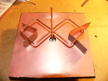 Con unos separadores ubicamos la "biquad" a 15 mm por encima del cobre para poder soldarla a las patitas