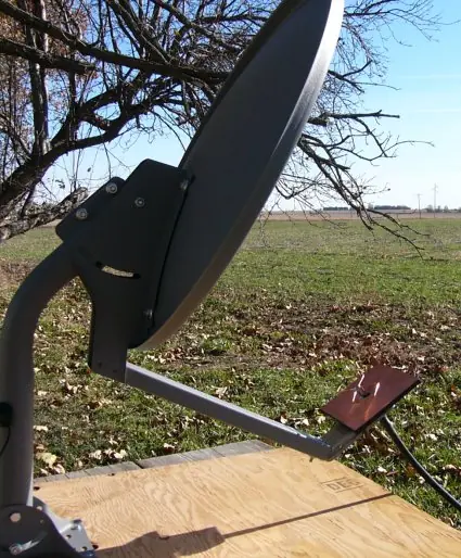 A la antena de directv le retiramos el LNB sacando un tornillo que tiene en la base