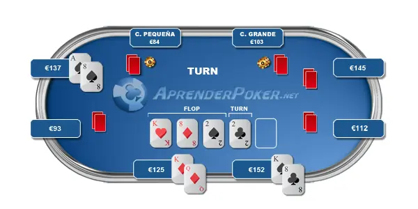 Una vez todos los jugadores han tenido la oportunidad de realizar una de las acciones después del flop, el croupier enseña una cuarta carta comunitaria: el turn.