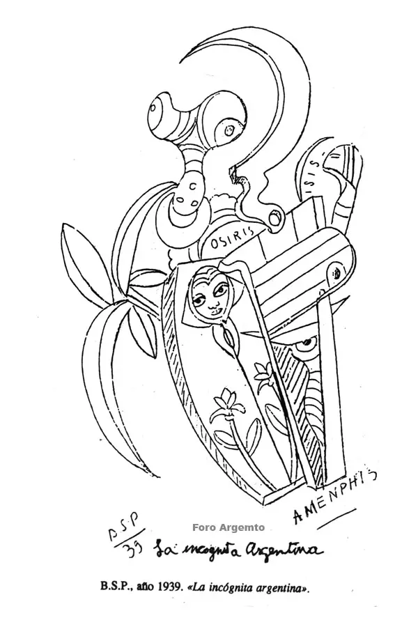Una de esas psicografías reza: “Osiris, Isis, Amenphis. La incógnita Argentina”. (1939)