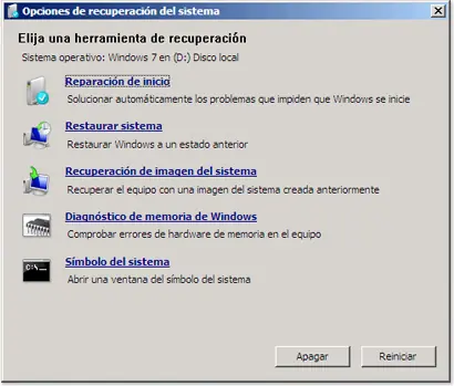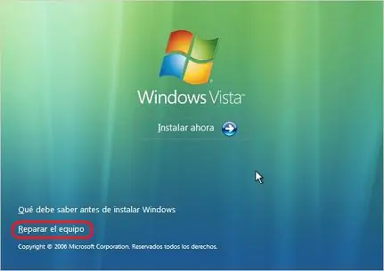 1. Inserta el cd de windows (en mi caso tengo windows vista). Luego boteas a la unidad del disco como si lo fueses a instalar, una vez cargada la pantalla te debe salir esto: