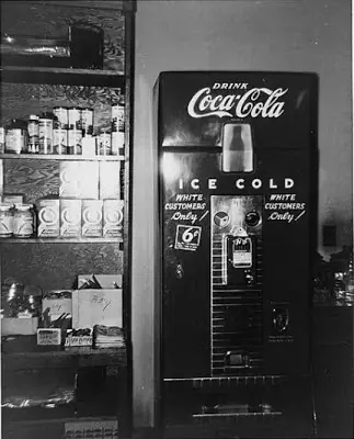 Maquina expendedora de Coca-Cola solo para clientes blancos (White Customers Only). Imagen tomada entre 1943 y 1960 en EEUU.