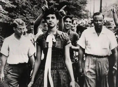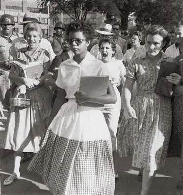 El 17 de Mayo de 1954, la Corte Suprema de los Estados Unidos declaro inconstitucional la segregación racial en los centros de enseñanza de todo el país. En septiembre de 1957, la quinceañera Elizabeth Eckford y otros ocho estudiantes afroamericanos intentaron entrar en el Instituto Central de Educación Secundaria de Little Rock, capital del Estado de Arkansas, que hasta entonces sólo había aceptado alumnos blancos. Por orden del gobernador de Arkansas, Orval Faubus, fueron expulsados por la Guardia Nacional. En la imagen, tras ella, vemos a Hazel Bryan Massery gritándole desaforadamente junto a otros enfurecidos alumnos del centro. Fotografía tomada por Will Counts el 4 de Septiembre de 1957.