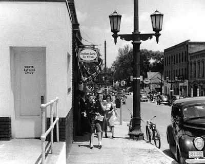 Aseo publico solo para chicas blancas (White Ladies Only) en Durham, Carolina del Norte. Fotografía tomada por Jack Delano en mayo de 1940.