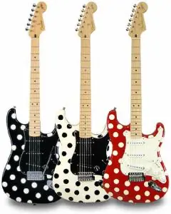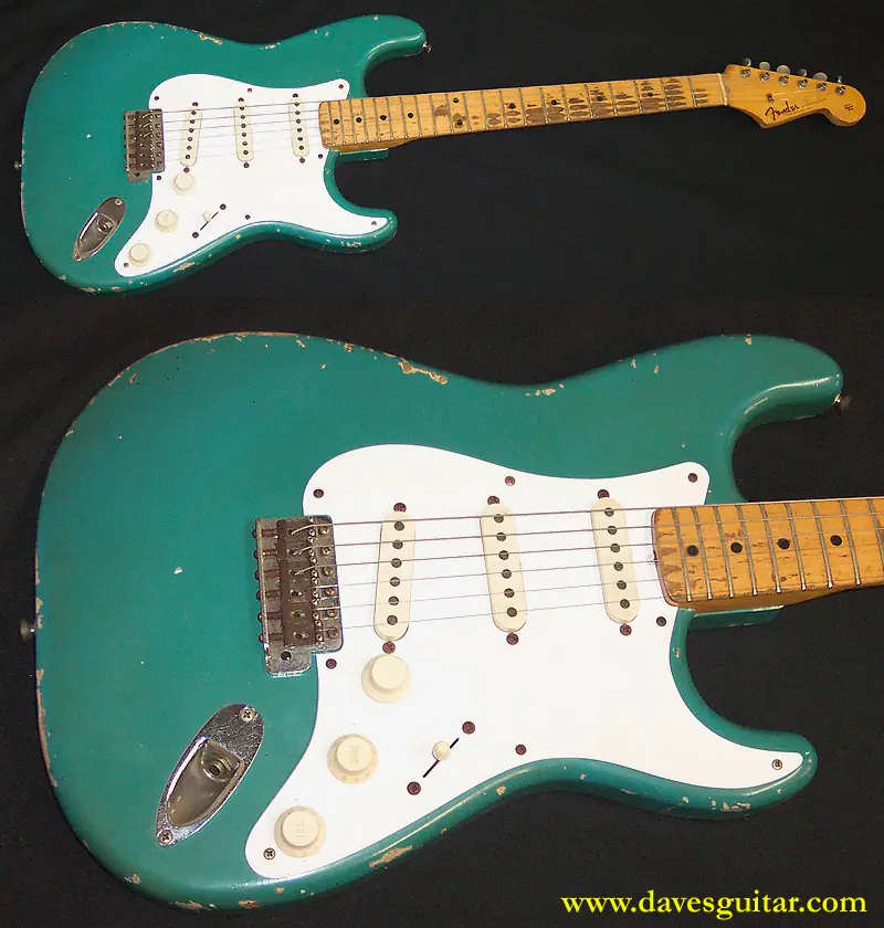 Stratocaster desde 1954: Esta es una Strat ’57 . Valuada en U$S 80,000 (es mas cara que otra Strato de esta época, debido a su color no standard.