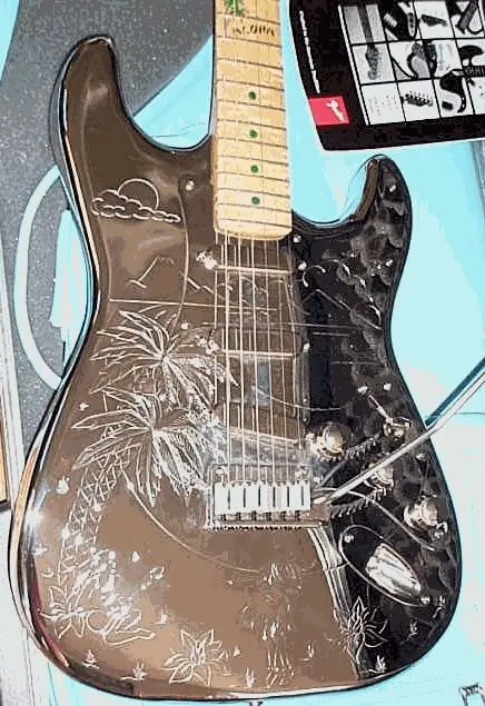 Fender Aloha Stratocaster: 153 guitarras fueron producidas. Cuerpo y clavijero enchapado.