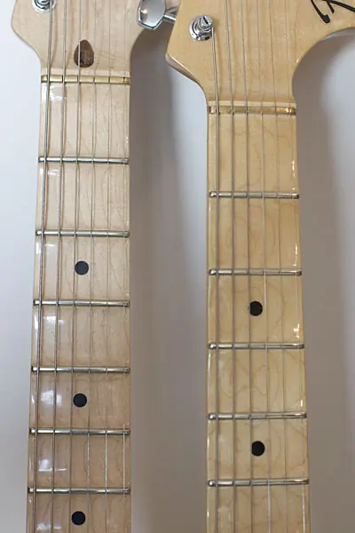 Mango: Los puntos que marcan los trastes fueron cambiados, de ser de “Clay”, una perla genuine, pasaron a ser de “Pearloid” un acetato imitación de perla.