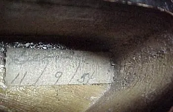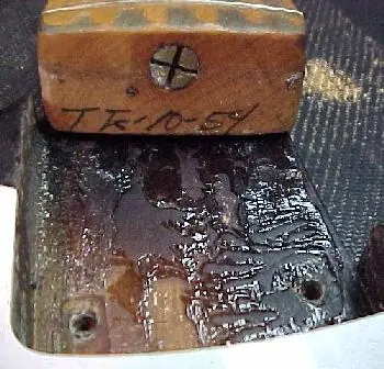 En el interior de la guitarra: En esta foto se puede ver una cina que dice: 11/9/54. Y marca la fecha en la que se soldaron los componentes.