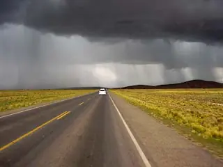 Recuerda que un vehículo cerrado puede ser un buen refugio ante una tormenta. Disminuye la velocidad y no te detengas en zonas donde pueda discurrir gran cantidad de agua.