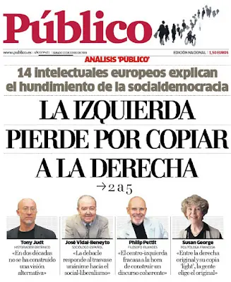 Una evolución más lenta, pero paralela, fue la de las socialdemocracias desde la escisión de la Internacional Socialista. Sin salir de los límites de un país como Gran Bretaña, la izquierda laborista del estatista Premier Attlee, apenas sería reconocible en el actual gobierno del privatista Blair: el socialismo de éste hubiera sido considerado derechista hace sólo medio siglo. El peronismo, en Argentina, fue estatista -aunque derechista- de la mano de Perón, aunque en la actualidad alcanzó la cumbre -con la conducción del menemismo- de las privatizaciones. Es evidente, entonces, si abundáramos en más ejemplos obvios, que los cambios copernicanos de programas políticos no conocen fronteras. La derecha y la izquierda políticas carecen de contenido estable a escala universal y también nacional; son tan relativas como en geometría. Otro ejemplo. Durante la Cumbre de la Internacional Socialista (¿ ?) realizada en Buenos Aires -junio de 1999- se tuvo oportunidad de asistir, atónitamente, a la definición, por parte de variados líderes socialdemócratas, de la "tercera vía" propuesta tanto por el laborismo británico y los socialismos francés y alemán, como que "... apoyamos una economía de mercado, no una sociedad de mercado", es decir, una disociación -economía y sociedad, a la cual M. Weber (1944) no las veía como separadas- difícil de comprender más allá de la retórica fácil de los discursos huecos. Y más difícil aún, proviniendo de dirigentes de la socialdemocracia internacional, que si bien nunca se han mostrado como revolucionarios plenos, al menos han sido tibiamente progresistas.