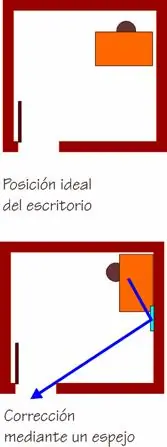 Se suele decir que “según el feng shui” uno nunca debería sentarse de espaldas a la puerta, para no recibir el Chi negativo. En realidad, todo depende de las circunstancias. Imaginemos que tu oficina tiene una ventana con una vista maravillosa de un parque con un lago etc., que sólo puede verse estando sentado de espaldas a la puerta: resultaría casi absurdo desaprovechar esa vista tan favorable. Dependiendo del tipo de trabajo que se realice, podemos distinguir dos posiciones para el escritorio con relación a la puerta: