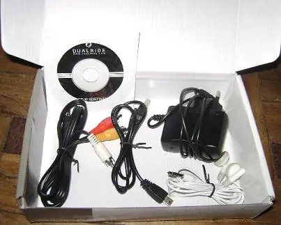 Tiene 4 flechas direccionales, 4 botones para los juegos y los menues, un botón de ESC, uno para prendido/apagado y uno para resetearlo por si se traba. Tiene una salida mini USB para conectarlo a la PC, otra de energía para el transformador, una para conectarle un micrófono externo y otra para los auriculares y el cable de TV. La cámara se encuentra en la parte trasera junto con una patita para apoyarlo y poder ver los videos. La memoria Micro SD se inserta por debajo. La caja trae los auriculares, los cables de TV, el cable USB, el transformador y el CD con los drivers y programas para convertir videos.
