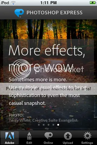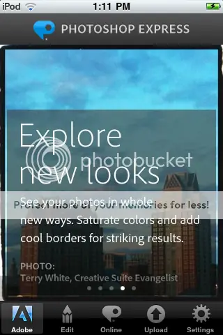 Si habéis instalado Photoshop Mobile para iPhone o iPod Touch, en una actualización esta app ha de haberse guardado como Photoshop Express. Después del salto os dejo una galería para que veáis cómo cambió esta app.