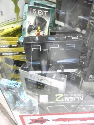 Caminando por Once me encontré con este engendro que intenta engañar a los paparulos que piensan comprar una play 3 a sus hijos por un módico precio de 2 cifras... Oh! Sus vanas ilusiones de ganarse el amor de sus críos se convertirán en vergüenza ante la carita comprensiva del niño que recibirá la consola de 16 Bits maquillada el cual se empezara a cuestionar la influencia genética en el desarrollo intelectual de su personita.