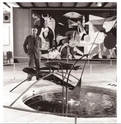 Calder con su manantial de mercurio delante del Guernica. Julio de 1937.
