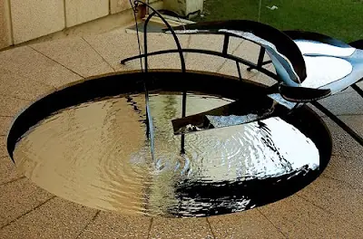 Recordando esas fuentes de mercurio de la época andalusí Alex Calder escultor estadounidense ideo una para el pabellón de la República Española en la Exposición Universal de París de 1937.