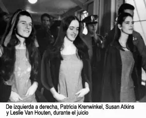 . Patricia Krenwinkel era una chica fea y velluda, con la autoestima inexistente, y que por lo tanto había sido una presa fácil para Manson. Ni ella ni Susan Atkins sabían lo que iban a hacer aquella noche, pero al descubrirlo no dudaron en sumarse a la fiesta con alborozo, ante una horrorizada Sharon Tate, conocida por su ingenuidad y candidez, que sin embargo fue la última en morir y tuvo que ver cómo aquellas personas acababan violentamente con la vida de sus amigos, uno tras otro. Fuera, en el jardín, quedó otra chica de la familia, Linda Kasabian, quien no imaginaba la carnicería que estaba teniendo lugar y que posteriormente se convirtió a cambio de inmunidad en el principal testigo de la acusación contra Manson y la familia. Mientras regresaban en coche al rancho, Patricia Krenwinkel dijo a sus compañeros de masacre lo siguiente: "Cuando se hiere y se encuentra hueso, duele la mano, y después es difícil sacar el cuchillo". Meses después, en el juicio por los asesinatos, Susan Atkins comentó: "Lo que más recuerdo es el ruido que hacía la sangre de Sharon al salir de sus heridas". Igual que en el anterior crimen de Gary Hinman, los asesinos dejan otro mensaje. Susan Atkins, con una toalla mojada en la sangre de Tate, escribe "Pig" en la puerta de entrada. Ninguno de ellos sabe quiénes son las personas a las que acaban de matar. La macabra escena es descubierta al día siguiente por la encargada de la limpieza, Winifred Chapman, a las nueve de la mañana (posteriormente, en el juicio se negó a relatar lo que vio porque "es demasiado para mí"