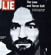 Como no podía ser de otro modo, el caso Manson tuvo igualmente su vertiente musical. El 6 de marzo de 1970 se editó el primer disco oficial de Charlie: Lie: The Love And Terror Cult, que incluye catorce de las canciones que se habían grabado en el estudio privado de Brian Wilson, y que fue publicado gracias a Phil Kaufman, antiguo compañero de celda de Manson y, también, uno de los responsables del robo del cadáver de Gram Parsons el 20 de septiembre de 1973. La carpeta del disco muestra la famosa portada de la revista Life, del 19 de diciembre de 1969, en la que aparece Manson con un rostro desencajado por la paranoia. En cuanto a lo musical, cualquier acercamiento escéptico al disco queda inmediatamente anulado en cuanto empieza la primera canción, "Look At You Game, Girl", que demuestra casi de manera obscena el talentoso músico que había en Manson, bajo capas de violencia y resentimiento. Su voz nasal, característica importante del disco, entona una canción suave, sutil y sobrada de lirismo. Muchas veces sus composiciones son circulares, hipnóticas, casi mantras que encierran un poderoso magnetismo, como es el caso de "Ego", "Mechanical Man" o "Don't Do Anything Legal", y que no hacen muy difícil imaginar cómo era el ambiente de las orgías de música y LSD de la familia. La instrumentación es siempre muy austera, apenas la guitarra de Manson, algunas percusiones, puntualmente las voces de sus chicas y un estilo casi siempre cercano al folk. Hay que destacar la terrorífica "I'll Never Say Never To Always", una canción de tono infantil pero de intenciones perversas, interpretada sólo por las chicas -las risas que se escuchan hacia el final resultan especialmente siniestras-, entre ellas Susan Atkins y Patricia Krenwinkel, que después se convertirían en asesinas. La pegadiza "Garbage Dump" habla de la costumbre de la familia de alimentarse con las sobras que los supermercados de Simi Valley lanzaban a sus contenedores traseros, lo cual Manson consideraba un acto anticapitalista. Por último, no se puede dejar de citar "Cease To Exist", casi irreconocible en comparación con la versión de los Beach Boys, y aquí mucho más dylaniana; y "Big Iron Door", una gran canción que suena especialmente tétrica gracias al contrapunto de sus onomatopeyas. Con el dinero de las ventas del disco -no demasiadas, tan sólo se vendieron unas trescientas copias-, Manson trató de sufragar los costes del juicio. Hoy día queda como el testimonio malicioso y alucinado, pero, repito, recomendable y no exento de talento -como él mismo repetía en las entrevistas, "la música es mi religión"-, de uno de los hechos más tenebrosos de finales de los sesenta.