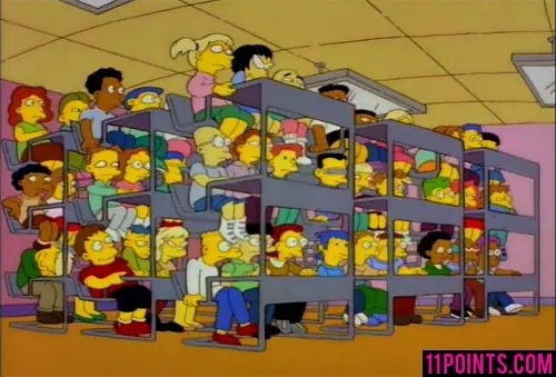 7.- Escuelas sobrepobladas: Durante este episodio la escuela primaria de Springfield estaría saturada de niños. En 2010 las escuelas públicas de Estados Unidos albergan gran cantidad alumnos.