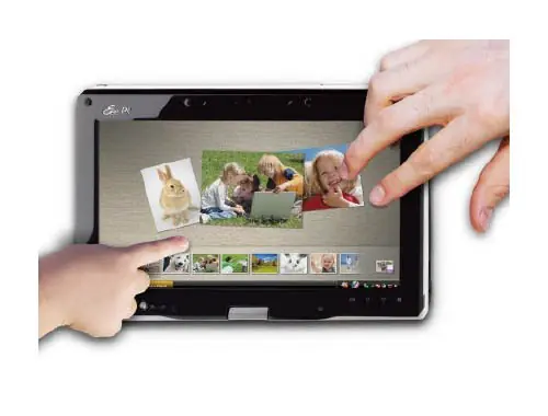 Lo más llamativo y novedoso de este netbook, es precisamente la capacidad multitáctil que ofrece, ya que como podéis apreciar en la imagen, estamos ante un híbrido entre netbook y Tablet PC que no llega al kilogramo de peso.