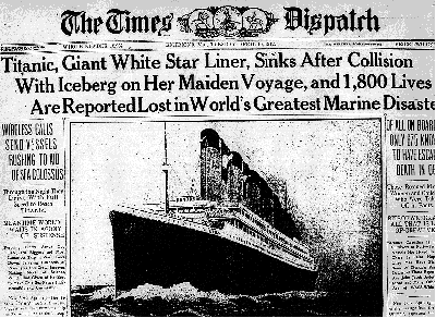 La noche del 14 de abril de 1912, durante su viaje inaugural, el Titanic chocó contra un iceberg y se hundió dos horas y 40 minutos después, en las primeras horas del día 15. El siniestro se saldó con la muerte de 1.517 pasajeros de los más de 2.200 que viajaban a bordo, lo que supone uno de los peores desastres marítimos en tiempo de paz que se recuerdan, y sin duda el más famoso. La elevada cifra de muertos se debió principalmente a que, a pesar de cumplir con las reglas marítimas de la época, el Titanic no llevaba botes salvavidas suficientes para todos los pasajeros. Los botes tenían una capacidad total de 1.178 plazas, aunque el barco podía albergar hasta 3.547 personas. Un desproporcionado número de hombres murieron debido al protocolo de salvamento que se siguió en el proceso de evacuación de la nave.