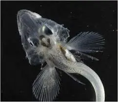 Este pez transparente no tiene glóbulos rojos y es glicerol en su sangre el que actua como anticongelante.( vive en la antartica)