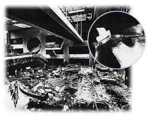 Este fue un gran desastre que se produjo el 17 de julio de 1981 en Kansas City, Missouri, matando a 114 personas e hiriendo a más de 200 durante un baile de té. En su momento, fue el más mortífero colapso estructural en la historia de EE.UU. El 17 de julio de 1981, aproximadamente 2.000 personas se habían reunido en el atrio de participar y ver un concurso de baile. Decenas de pie en los pasillos. A las 7:05 de la tarde, las pasarelas en el segundo, tercer y cuarto piso se llena de visitantes, ya que velaba por el lobby activo, también llena de gente. El puente del cuarto piso, suspendida directamente sobre el puente del segundo piso, con el pasillo del tercer piso se lanzó a la cara a varios metros de distancia de los otros dos. Cuestiones de construcción llevado a un cambio de diseño sutil pero errónea de que se duplicó la carga en la conexión entre el soporte del piso cuarto y los tirantes de llevar el peso del pasillo del segundo piso. Este nuevo diseño apenas podía soportar el peso de la estructura en sí, y mucho menos el peso de los cientos de espectadores de pie en él. La conexiones Fallaron y los dos caminos se estrellaron en el vestíbulo, matando a 114 personas e hiriendo a más de 200.