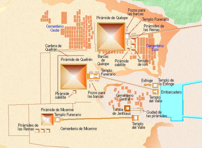 Parece ser que este mismo método fue empleado por los constructores de las pirámides de la V dinastía. No es absolutamente seguro, sin embargo, que las tres pirámides de Gizeh se construyeran siguiendo este sistema. Como norma general, la tumba real debía estar situada al oeste del Nilo, lugar de la puesta del sol, y por encima del nivel del río, para evitar que las inundaciones periódicas afectaran al monumento.