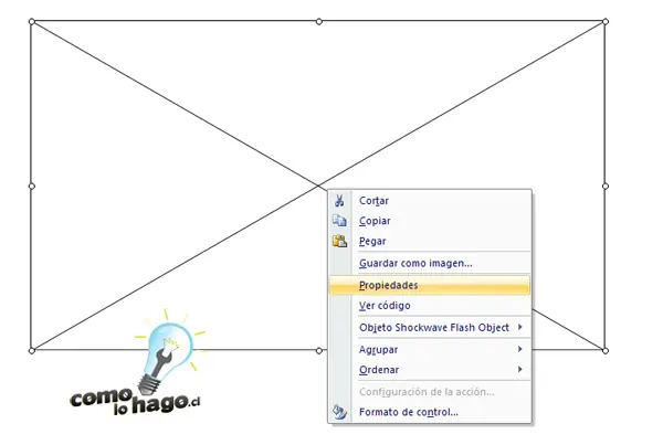 7.- Luego, hacemos click con el botón derecho del mouse sobre el área que acabamos de dibujar y seleccionamos la opción Propiedades:
