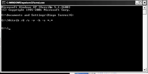 Lo primero que hacemos es ingresar al cmd, ubicarnos en nuestra memoria (en mi caso G