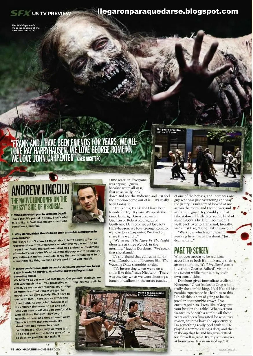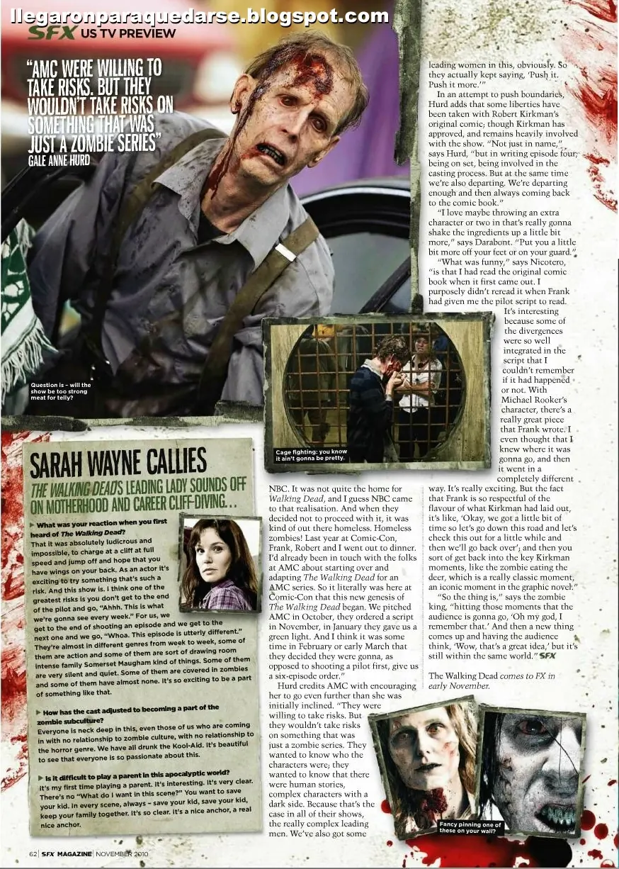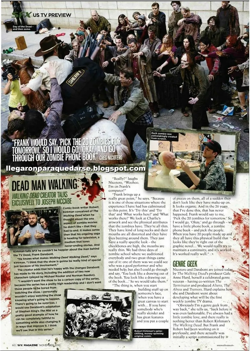 Fuente: SFX Magazine y copy/paste de: http://llegaronparaquedarse.blogspot.com/2010/09/ walking -dead- articulo -y-entrevistas-en.html