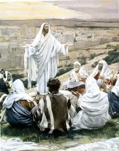 Predicó tanto en sinagogas como al aire libre, y las muchedumbres se congregaban para escuchar sus palabras. Entre sus discursos, destaca el llamado Sermón de la Montaña, en el Evangelio según San Mateo (Mt 5-7). Utilizó a menudo parábolas para explicar a sus seguidores el Reino de Dios. Las parábolas de Jesús son breves relatos cuyo contenido es enigmático ( a menudo han de ser después explicadas por Jesús). Tienen en general un contenido escatológico y aparecen exclusivamente en los evangelios sinópticos. Entre las más conocidas están la parábola del sembrador (Mt 13,3-9; Mc 4,3-9; Lc 8,5-8), cuyo significado explica Jesús a continuación; la de la semilla que crece (Mc 4,26-29); la del grano de mostaza (Mt 13,31-32; Mc 4,30-32), la de la cizaña (Mt 13,24-30), la de la oveja perdida (Mt 18,12-14; Lc 15,3-7), la del siervo despiadado (Mt 18, 23-35), la de los obreros enviados a la viña (Mt 20,1-16), la de los dos hijos (Mt 21,28-32), la de los viñadores homicidas (Mt 21,33-42; Mc 12,1-11; Lc 20,9-18); la de los invitados a la boda (Mt 22, 1-14), la de las diez vírgenes (Mt 25,1-13), la de los talentos (Mt 25,14-30; Lc 19,12-27). Dos de las más conocidas aparecen solo en el Evangelio según San Lucas: se trata de las parábolas del samaritano (Lc 10,30-37) y del hijo pródigo (Lc 15,11-32). En las parábolas, utiliza Jesús frecuentemente imágenes relacionadas con la vida campesina.
