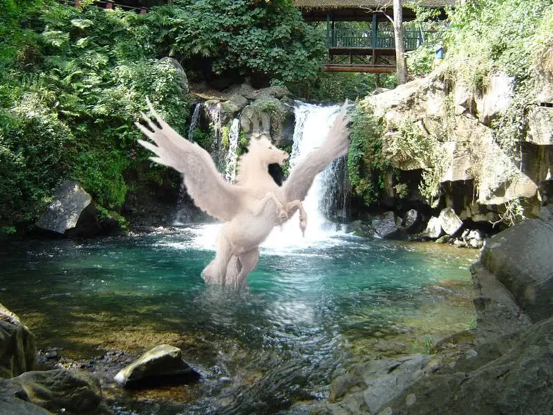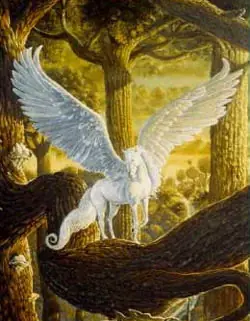 A diferencia del Unicornio, el Pegazo si tiene un origen en la mitología griega: Cuenta la leyenda que cuando Perseo decapitó a Medusa, de su sangre derramada nació un Pegaso. Al poco tiempo de nacer, Pegaso golpeó el suelo del monte Helicón y de su golpe surgió un manantial, que se considera la fuente de la inspiración poética.