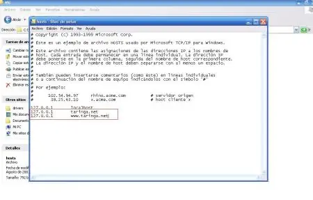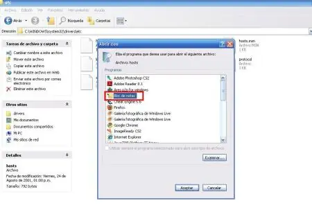 Después hay que abrir el archivohosts con Bloc de notas