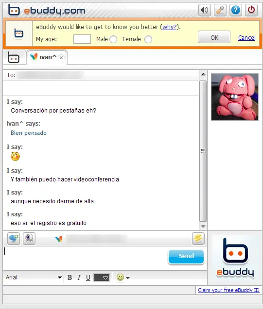 no se queda atrás. También soporta el uso de la webcam (no así el envío de archivos) y, de igual modo, requiere de registro gratuito para acceder a estas funciones. Cierto es que incorpora más publicidad, incluso en tu mensaje personal, pero, a cambio, te ofrece conversaciones ordenadas en pestañas y es el único capaz de mostrar emoticonos personalizados.