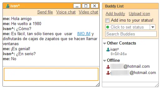 El aspecto de IMO.IM puede engañar, ya que bajo esas cajas de zapatos multicolor tienes la posibilidad de enviar archivos y hacer videoconferencia. Si quieres conectarte a la red de Skype, IMO.IM es el único capaz de hacerlo.