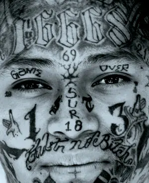 MS y el número 13 son tatuajes sinónimos de pertenencia a la Mara Salvatrucha, la banda juvenil más poderosa del mundo. Actualmente cuenta con aproximadamente 100.000 miembros dispersos entre Estados Unidos, Centroamérica, Canadá e incluso el Líbano.