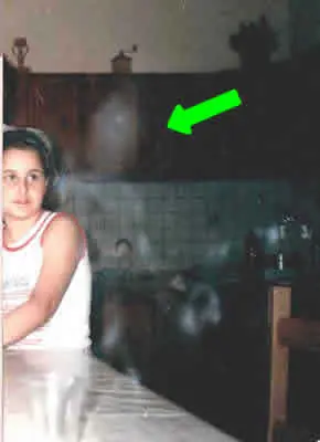 Esta fotografía fue tomada en 1990 en Italia, era parte de una serie de fotografías familiares en la cocina de la casa, donde la familia estaba teniendo una reunión. Después de revelar el rollo notamos que en el segundo cuadro de la serie había una imagen comenzando a aparecer del lado derecho de la foto. En la tercera fotografía la pequeña niña miro a su lado izquierdo y la imagen apareció. Esto fue en el extremo derecho de la fotografía; la persona del laboratorio que revelo los negativos fue quien describió lo que sucedió con esta serie de fotografías.