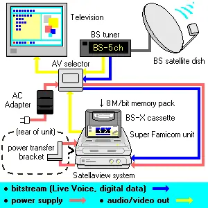 Adaptador Satellaview, que se añadía a la parte inferior de la Super Nintendo y se conectaba a través del puerto de expansión (el cual no había sido aún usado).