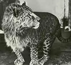 Un leopón es el producto de un cruce entre un leopardo macho y una leona. La cabeza del animal se parece a la del león y el resto del cuerpo se parece al de un leopardo con manchas difusas. Los leopones son mayores que los leopardos y combinan características de sus dos padres. Tienen manchas de color marrón en vez de negro y los machos poseen una pequeña melena de 20 cm de longitud. Gustan de trepar a los árboles y disfrutan del agua como los leopardos (aunque es de señalar que los leopones japoneses nacieron de una leona que disfrutaba del agua y un leopardo que la aborrecía). Las hembras pueden tener problemas de conducta al tener que elegir entre el estilo de vida social de una leona y el solitario del leopardo.