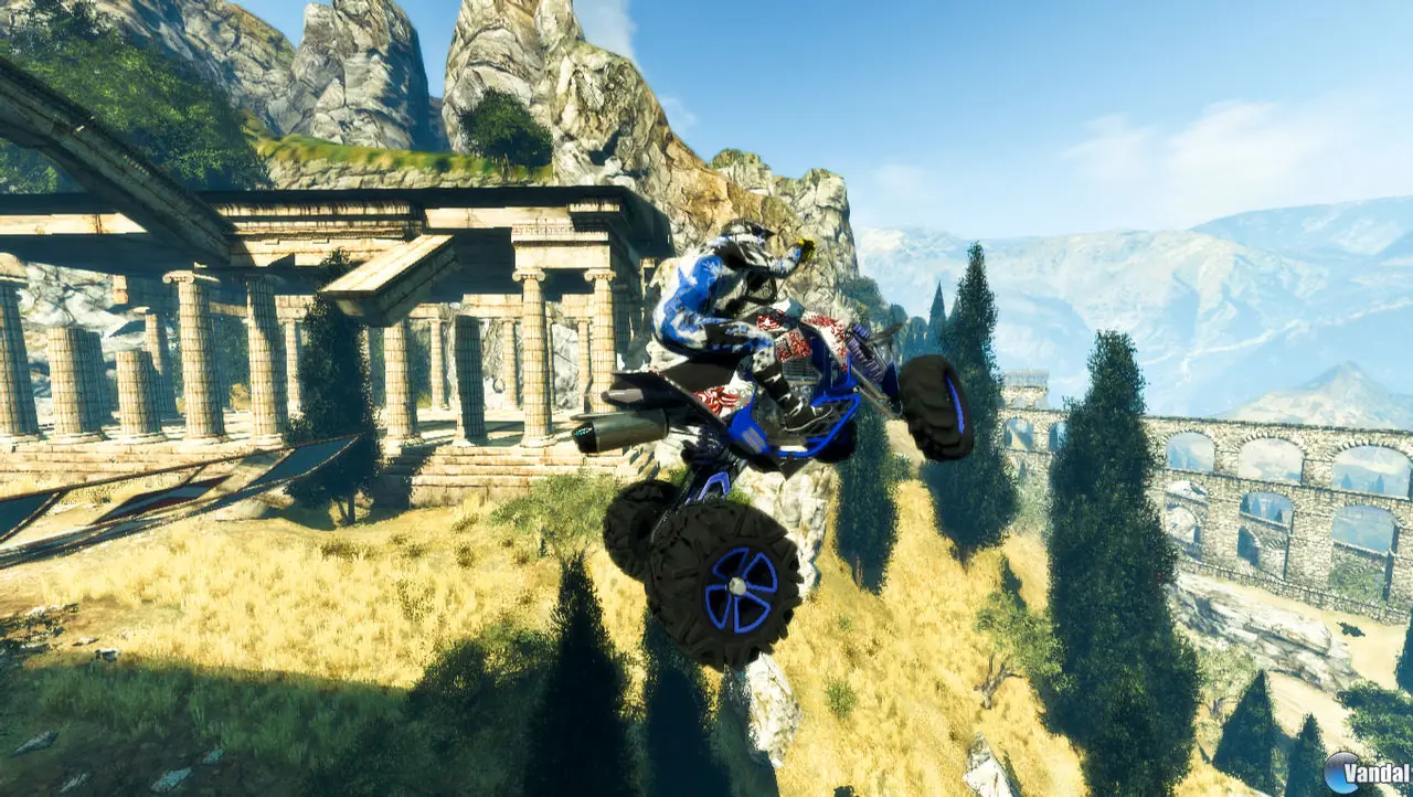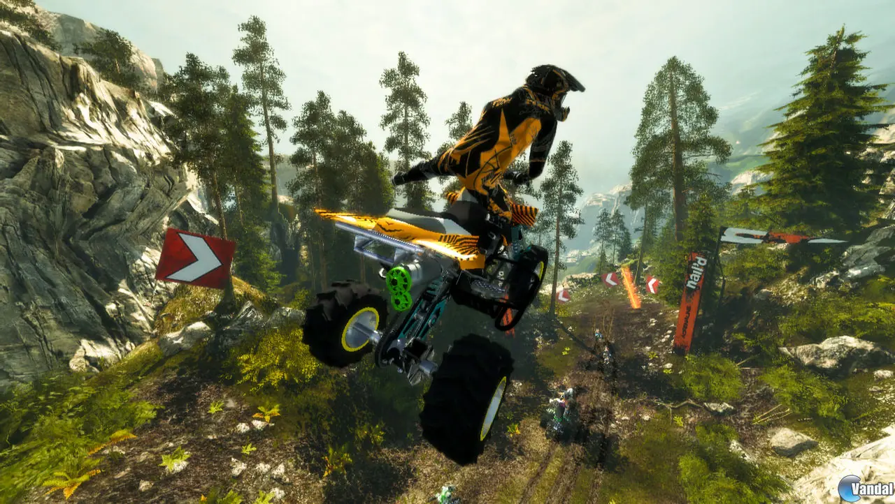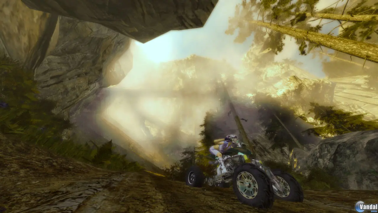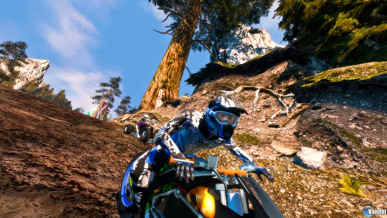 Pero dichos elementos no cumplirán una mera función ornamental, puesto que también tendrán su relevancia en carrera. Objetos como árboles y rocas obstaculizarán nuestro avance, mientras que las múltiples rampas y cambios de rasante provocarán que efectuemos saltos impresionantes, pudiendo llevar a cabo acrobacias en pleno vuelo. ¡Ah! y que sepáis que dichos escenarios esconderán diversas rutas y atajos, por lo que valdrá la pena tener los ojos bien abiertos para encontrarlos.
