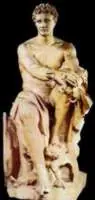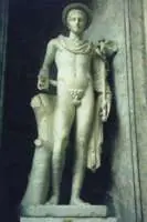 Hermes, en la mitología griega, mensajero de los dioses, hijo del dios Zeus y de Maya, la hija del titán Atlas. Como especial servidor y correo de Zeus, Hermes tenía un sombrero y sandalias aladas y llevaba un caduceo de oro, o varita mágica, con serpientes enrolladas y alas en la parte superior. Guiaba a las almas de los muertos hacia el submundo y se creía que poseía poderes mágicos sobre el sueño. Hermes era también el dios del comercio, protector de comerciantes y pastores. Como divinidad de los atletas, protegía los gimnasios y los estadios, y se lo consideraba responsable tanto de la buena suerte como de la abundancia. A pesar de sus virtuosas características, también era un peligroso enemigo, embaucador y ladrón. El día de su nacimiento robó el rebaño de su hermano, el dios del sol Apolo, oscureciendo su camino al hacer que la manada anduviera hacia atrás. Al enfrentarse con Apolo, Hermes negó haber robado. Los hermanos acabaron reconciliándose cuando Hermes le dio a Apolo su lira, recién inventada. En el primitivo arte griego, se representaba a Hermes como un hombre maduro y barbado; en el arte clásico, como un joven atlético, desnudo e imberbe como puede comprobarse en el Hermes de Praxíteles, en Olimpia