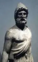 Poseidón, en la mitología griega, dios del mar, hijo del titán Cronos y la titánide Rea, y hermano de Zeus y Hades. Poseidón era marido de Anfitrite, una de las nereidas, con quien tuvo un hijo, Tritón. Poseidón, sin embargo, tuvo otros numerosos amores, especialmente con ninfas de los manantiales y las fuentes, y fue padre de varios hijos famosos por su salvajismo y crueldad, entre ellos el gigante Orión y el cíclope Polifemo. Poseidón y la gorgona Medusa fueron los padres de Pegaso, el famoso caballo alado.
