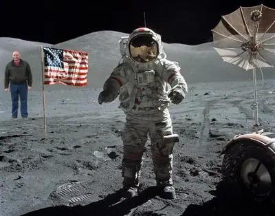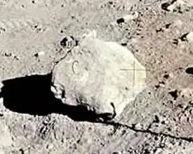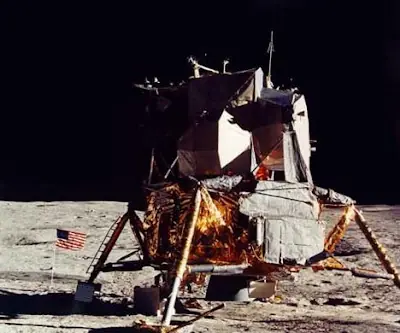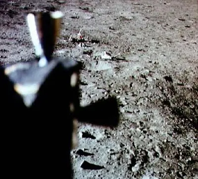 dijo:"Cuando este Módulo Lunar se posó en la Luna no produjo ningún cráter entre sus patas, a pesar de la considerable cantidad de polvo que debía haber levantado durante su descenso. Debajo del módulo hay una pisada, a pesar de que nadie anduvo por esa parte de la Luna antes del descenso del vehículo."