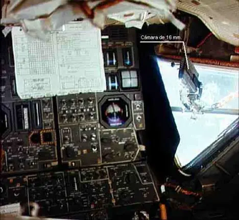 Camara de 16mm que hizo la foto. Notese la colocacion e inclinación.