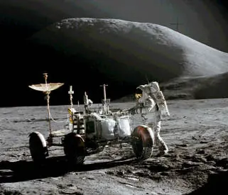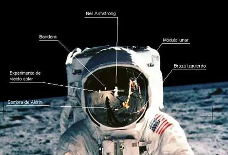 dijo:¡Cuidado! ¡Que esta fotografia aun tiene juego! Otro de los argumentos que esgrimen es la ausencia de estrellas en el cielo. Suponen que al no haber atmosfera (cosa erronea por otra parte. Si se quisiese ser completamente estrico deberiamos decir que tiene una tenue atmosfera), no habria por lo tanto contaminacion. Lo único que elimina la carencia de atmósfera es la difusión de la luz que da lugar a la luz ambiental omnidireccional a que estamos acostumbrados en la Tierra. Gracias a ello el cielo lunar es totalmente negro sin trazas de azul o gris ningunas. Pero el vacio lunar no puede evitar que cualquier objeto iluminado refleje la luz con la misma intensidad o más que la fuente original. Si, en caso de espejos convexos la luz reflejada podría ser MÁS INTENSA que la original.