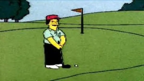 6. Lee Carvallo’s Putting Challenge (“Marge, no seas orgullosa”). Buf… Respetos al máximo, no es que el golf sea el deporte más dinámico del mundo, pero es que este juego ficticio tiene toda la pinta de ser el Uchi Mata de este género. Los usuarios de Spectrum sabrán a qué nos referimos; a los demás baste remitirles a la secuencia de créditos del capítulo “Marge, no seas orgullosa” para ver la brasa que el propio Carvallo da en su juego mientras se escoge un palo y se da el primer golpe a la bola. Carne de fondo de estantería, aquel lugar al que no llegan ni las pelusas.