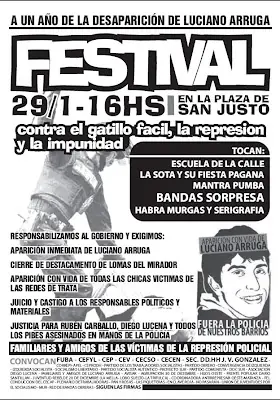 Miles de minutos de aire para De Narváez (padrino del destacamento vinculado a la desaparición de Luciano), o para el falso ingeniero Blumberg. Ni siquiera 30 segundos de aire para los jóvenes pobres. Para decir que la policía los busca para hacer el trabajo sucio. Y que cuando se niegan, los castigan. Esa es la historia de Luciano Arruga. No la del chorrito que robaba celulares y se enfrento a una policía “que nos cuida a todos”.