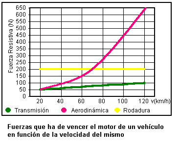 Como se ve en la figura, un poco mas allá de los 60 km/h, la resistencia aerodinámica es la fuerza más importante a vencer. Por este motivo, los fabricantes de coches tratan de encontrar formas aerodinámicas, esto es, formas que hagan mínima la resistencia del aire.