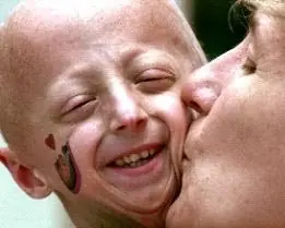 Descripción: Los individuos con progeria envejecen muy rápidamente desde la niñez. Al nacimiento tienen una apariencia totalmente normal pero van creciendo cada vez más lentamente que los otros niños y desarrollan una expresión facial muy característica. Pierden el pelo, adquieren arrugas y padecen un daño severo de las arterias (aterosclerosis) que les lleva a la muerte en los primeros años de la adolescencia.